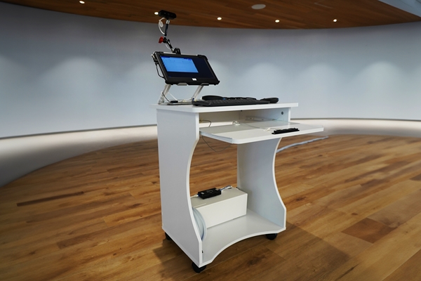 本システムは全幅15mの大型シリンドリカル(カーブ)スクリーンを使用し、VR-Commonsでは初となる偏光方式立体を採用した3Dシアターとなっており、お客様所有の立体映像も表示可能です。
